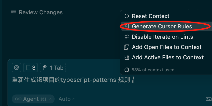 /Generate Cursor Rules命令直接生成规则。