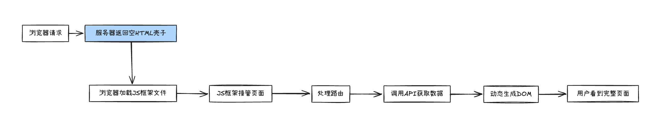 随着AJAX技术的出现和前端框架的成熟,客户端渲染逐渐成为主流。CSR模式下,服务器只提供静态HTML壳子和JavaScript文件,真正的页面渲染工作在浏览器中完成。