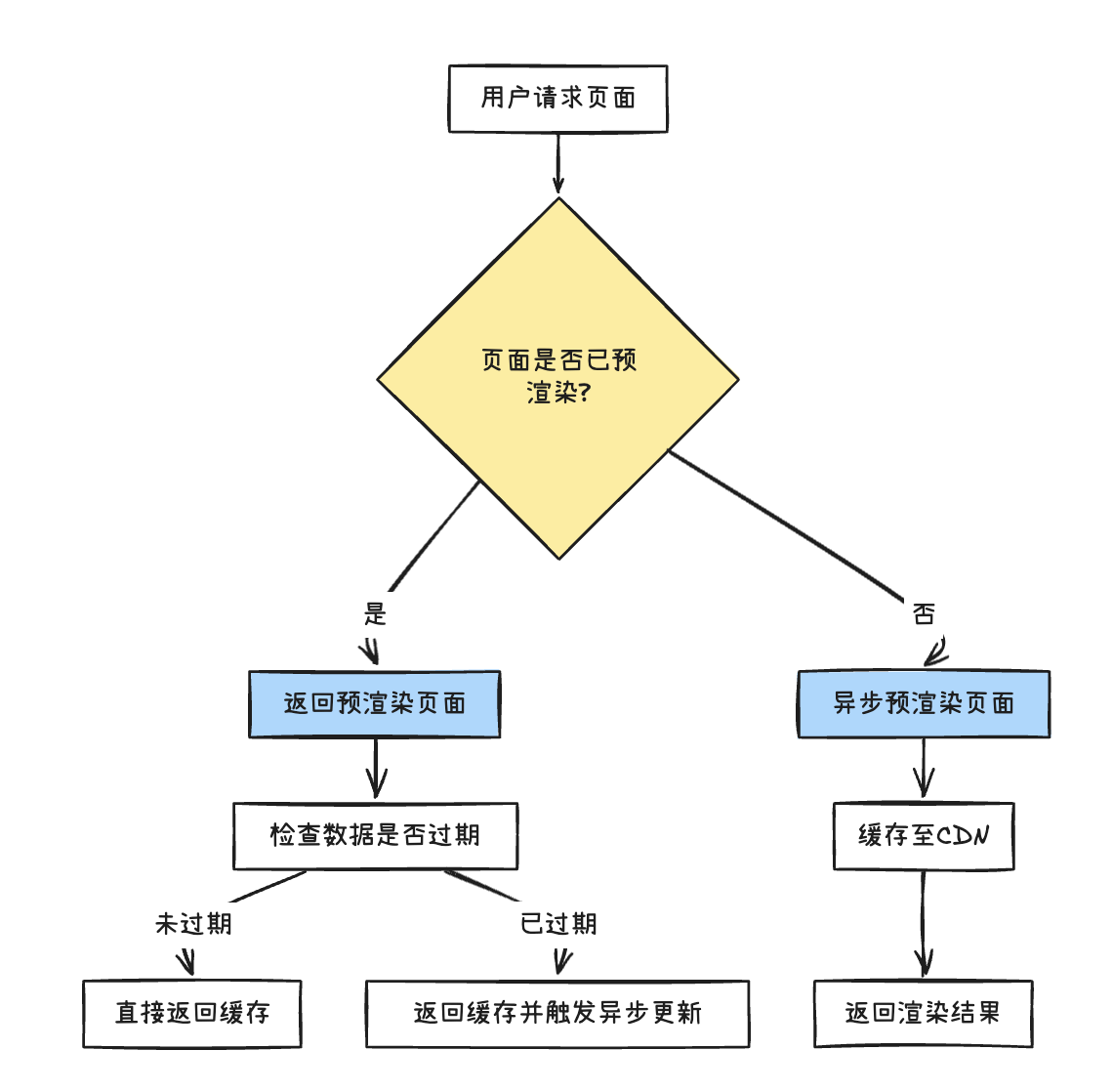 - 核心页面构建时预渲染,非核心页面在首次访问时按需渲染并缓存