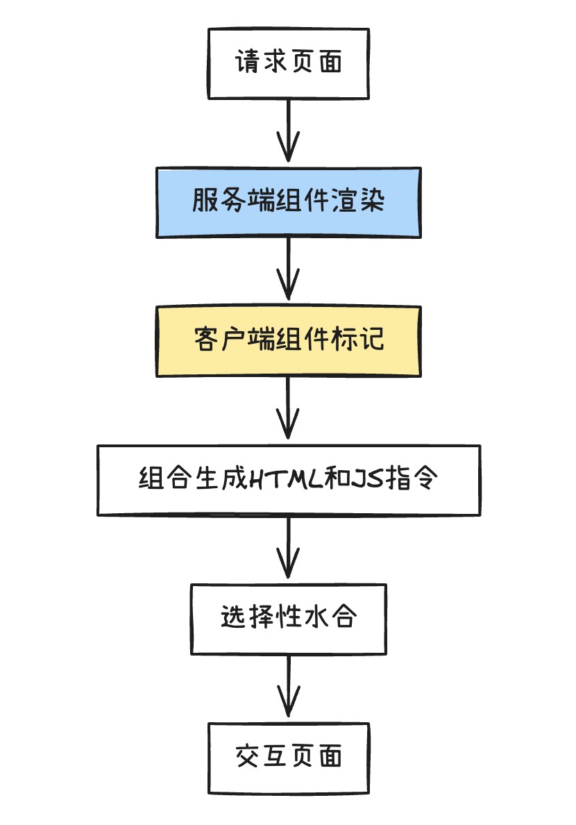 混合式渲染基于传统 SSR 渲染的方式进行了更加极致的性能优化, 关键技术是选择水合 Hydration。